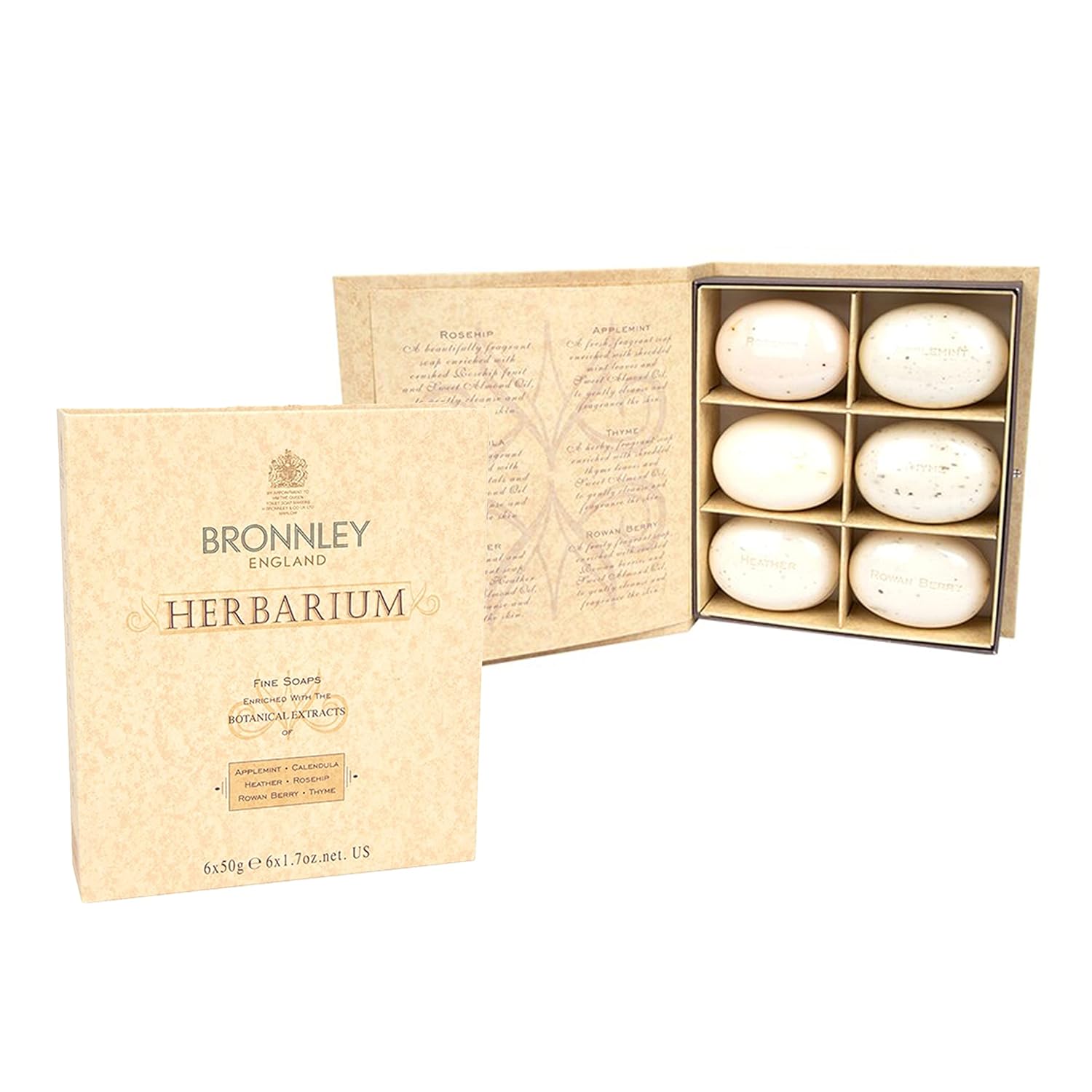 [Bronnley England] Herbarium Fine Soaps, Six Triple Milled, Vegan Soap Bars, Gift Soaps Boxed, Paraben-free, Shea Butter, 6x1.7oz Bar Soaps