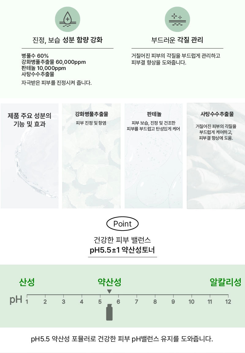 시카 캄 미스트토너는 부드러운 각질케어로 피부결을 정돈해주고, 가볍고 끈적임 없이 흡수되며 자극받은 피부를 진정시키고 촉촉하게 유지시켜 줍니다.